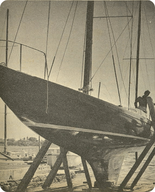 Rolly Tasker purchased her from John and had her modified and strengthened to handle offshore conditions. She had her stern clipped and planks added and a new cabin and accommodations. Her sail locker was stacked with a bigger range of options including her 3000 sq foot spinnaker. Her keel was alteredwith more weight and a spade rudder fitted.